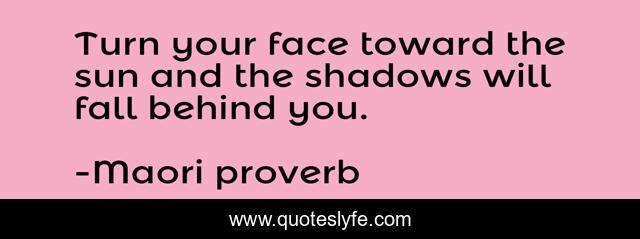 This page presents the quote "Turn your face toward the sun and the shadows will fall behind you.". Author of this quote is Maori proverb. This quote is about moving-on-and-letting-go, perspective, wisdom,.