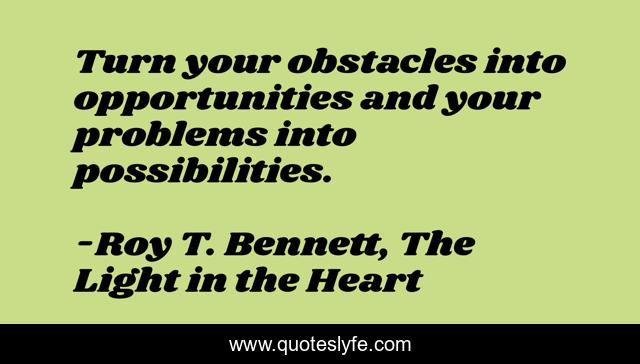 "Roy T. Bennett, The Light in the Heart Quotes." Quoteslyfe.com, 2025. Sun. 07 Dec. 2025. <https://www.quoteslyfe.com/quote/Turn-your-obstacles-into-opportunities-and-your-2234>.