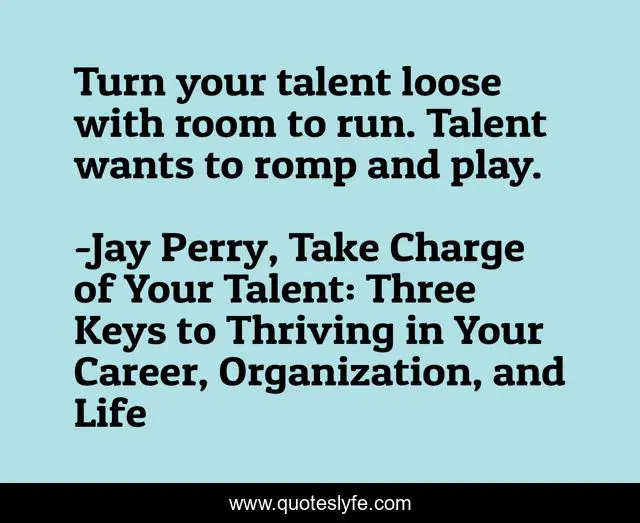 "Jay Perry, Take Charge of Your Talent: Three Keys to Thriving in Your Career, Organization, and Life Quotes." Quoteslyfe.com, 2025. Mon. 08 Dec. 2025. <https://www.quoteslyfe.com/quote/Turn-your-talent-loose-with-room-to-230312>.