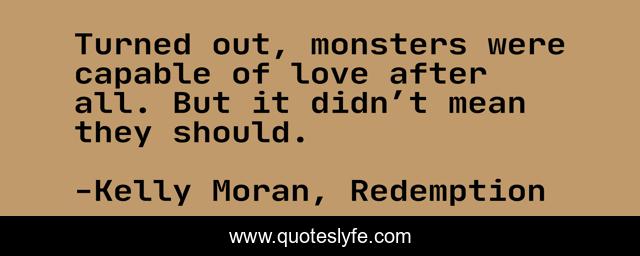 "Kelly Moran, Redemption Quotes." Quoteslyfe.com, 2025. Mon. 08 Dec. 2025. <https://www.quoteslyfe.com/quote/Turned-out-monsters-were-capable-of-love-150066>.