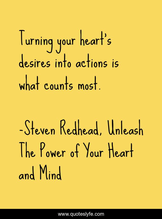 "Steven Redhead, Unleash The Power of Your Heart and Mind Quotes." Quoteslyfe.com, 2025. Fri. 05 Dec. 2025. <https://www.quoteslyfe.com/quote/Turning-your-heart-s-desires-into-actions-81201>.