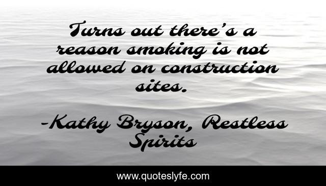 This page presents the quote "Turns out there’s a reason smoking is not allowed on construction sites.". Author of this quote is Kathy Bryson, Restless Spirits. This quote is about romantic-fantasy, ghosts, fairies, shakespeare,.