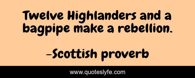 This page presents the quote "Twelve Highlanders and a bagpipe make a rebellion.". Author of this quote is Scottish proverb. .
