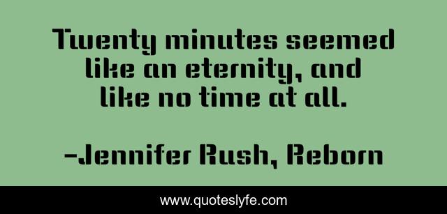 This page presents the quote "Twenty minutes seemed like an eternity, and like no time at all.". Author of this quote is Jennifer Rush, Reborn. This quote is about eternity, time,.