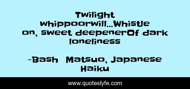 "Bashō Matsuo, Japanese Haiku Quotes." Quoteslyfe.com, 2025. Mon. 08 Dec. 2025. <https://www.quoteslyfe.com/quote/Twilight-whippoorwill-Whistle-on-sweet-deepenerOf-dark-138774>.