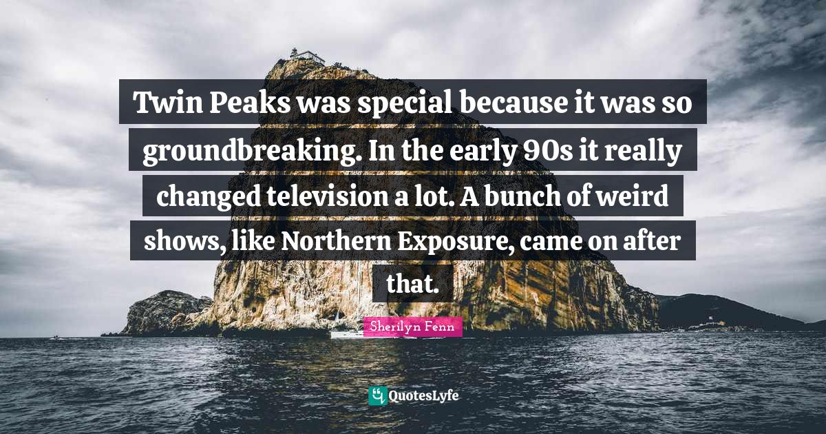 This page presents the quote "Twin Peaks was special because it was so groundbreaking. In the early 90s it really changed television a lot. A bunch of weird shows, like Northern Exposure, came on after that.". Author of this quote is Sherilyn Fenn. This quote is about twin peaks, television, twins, bunch, special, shows, exposure, changed, groundbreaking,.