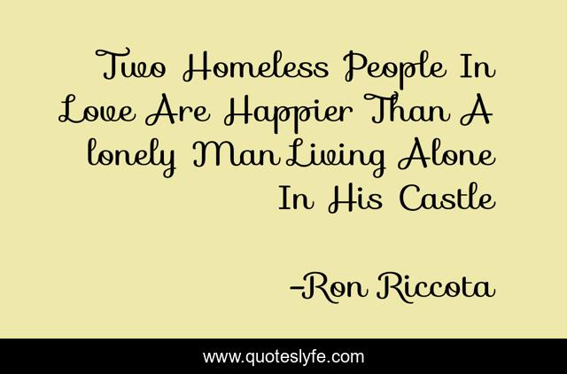 This page presents the quote "Two Homeless People In Love Are Happier Than A lonely Man Living Alone In His Castle". Author of this quote is Ron Riccota. .