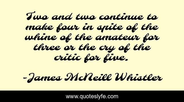 This page presents the quote "Two and two continue to make four in spite of the whine of the amateur for three or the cry of the critic for five.". Author of this quote is James McNeill Whistler. This quote is about critics, criticism,.
