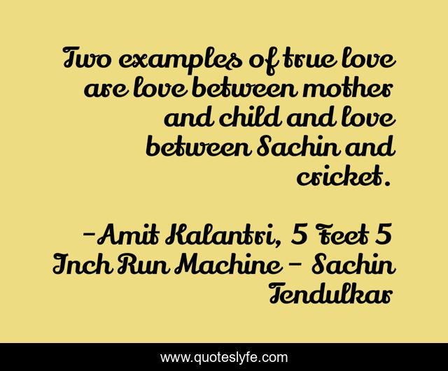 "Amit Kalantri, 5 Feet 5 Inch Run Machine – Sachin Tendulkar Quotes." Quoteslyfe.com, 2025. Mon. 08 Dec. 2025. <https://www.quoteslyfe.com/quote/Two-examples-of-true-love-are-love-197739>.