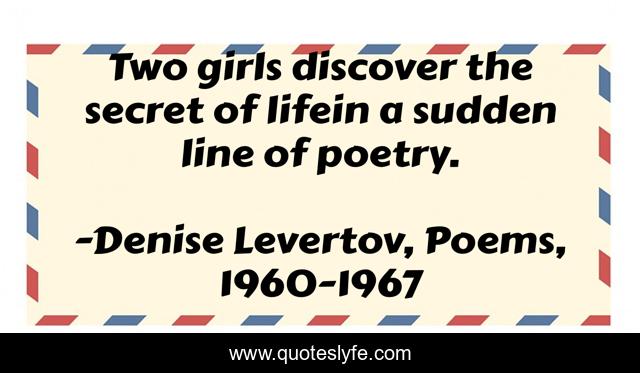 "Denise Levertov, Poems, 1960-1967 Quotes." Quoteslyfe.com, 2025. Sat. 06 Dec. 2025. <https://www.quoteslyfe.com/quote/Two-girls-discover-the-secret-of-lifein-24880>.