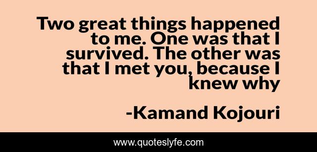 "Kamand Kojouri Quotes." Quoteslyfe.com, 2025. Sun. 07 Dec. 2025. <https://www.quoteslyfe.com/quote/Two-great-things-happened-to-me-One-71668>.