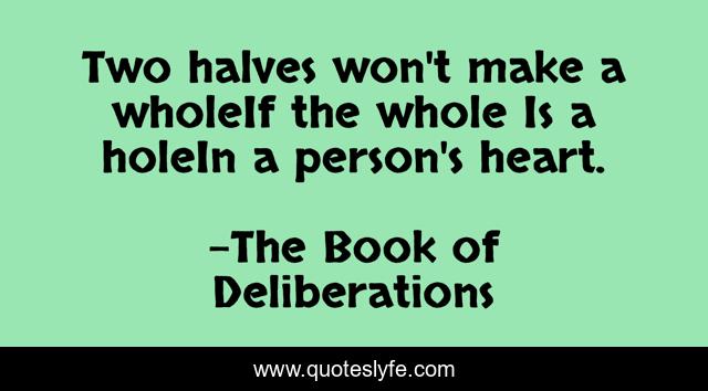"The Book of Deliberations Quotes." Quoteslyfe.com, 2025. Sat. 06 Dec. 2025. <https://www.quoteslyfe.com/quote/Two-halves-won-t-make-a-wholeIf-80714>.