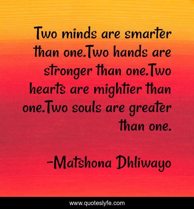 "Matshona Dhliwayo Quotes." Quoteslyfe.com, 2025. Fri. 05 Dec. 2025. <https://www.quoteslyfe.com/quote/Two-minds-are-smarter-than-one-Two-57716>.