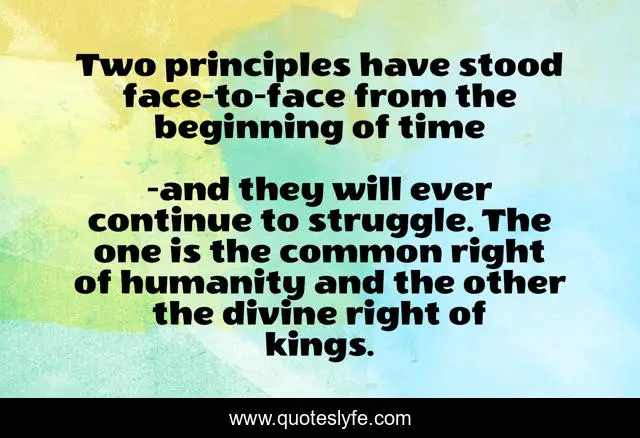 "and they will ever continue to struggle. The one is the common right of humanity and the other the divine right of kings. Quotes." Quoteslyfe.com, 2025. Fri. 05 Dec. 2025. <https://www.quoteslyfe.com/quote/Two-principles-have-stood-face-to-face-258883>.
