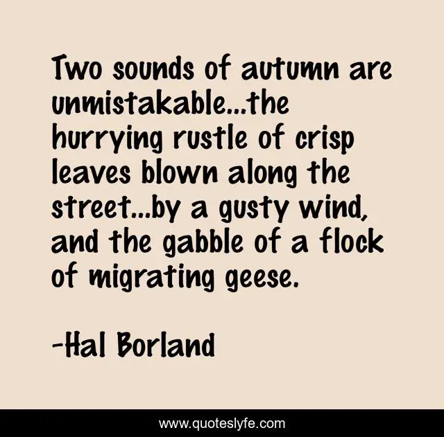 "Hal Borland Quotes." Quoteslyfe.com, 2025. Sun. 07 Dec. 2025. <https://www.quoteslyfe.com/quote/Two-sounds-of-autumn-are-unmistakable-the-257165>.