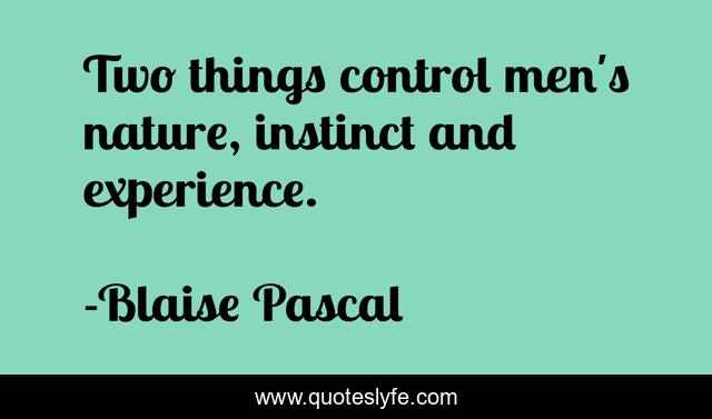 This page presents the quote "Two things control men's nature, instinct and experience.". Author of this quote is Blaise Pascal. This quote is about control, men, nature,.