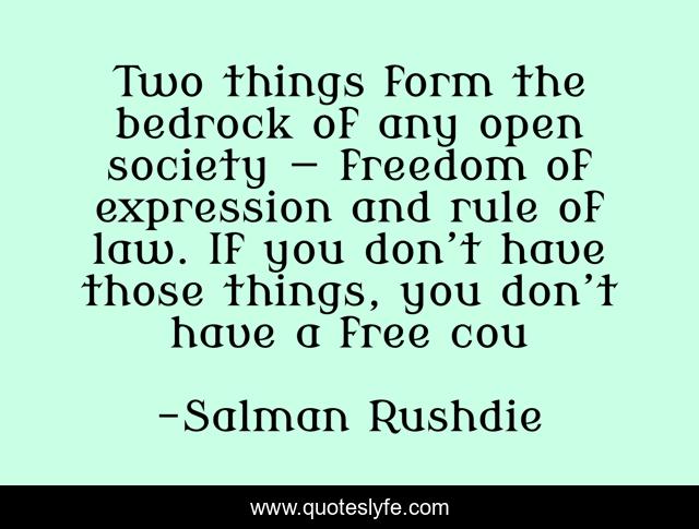 This page presents the quote "Two things form the bedrock of any open society — freedom of expression and rule of law. If you don’t have those things, you don’t have a free cou". Author of this quote is Salman Rushdie. This quote is about open-society, freedom-of-speech, democracy, rule-of-law, politics, freedom-of-expression,.