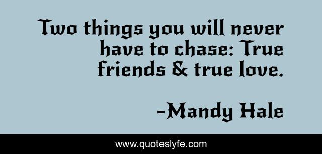 This page presents the quote "Two things you will never have to chase: True friends & true love.". Author of this quote is Mandy Hale. This quote is about true-love, love, the-single-woman, not-settling, true-friends, friends, positive-thinking, stop-the-chase, knowing-your-worth,.