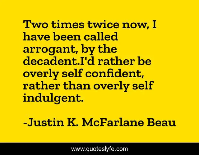 Two times twice now, I have been called arrogant, by the decadent.I'd rather be overly self confident, rather than overly self indulgent.