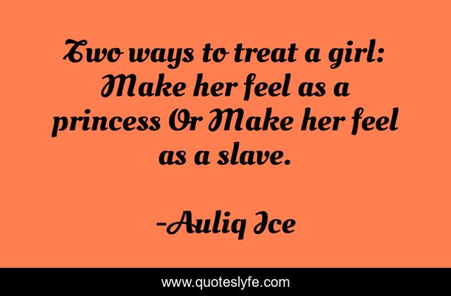 This page presents the quote "Two ways to treat a girl: Make her feel as a princess Or Make her feel as a slave.". Author of this quote is Auliq Ice. This quote is about divorce, marriage,.