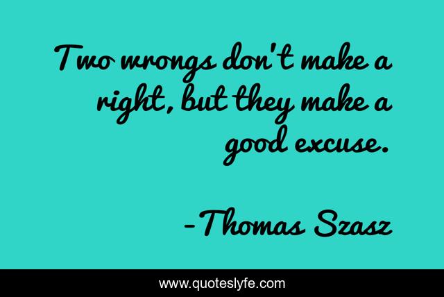 This page presents the quote "Two wrongs don't make a right, but they make a good excuse.". Author of this quote is Thomas Szasz. This quote is about enthusiasm, humor, inspirational,.