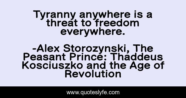 "Alex Storozynski, The Peasant Prince: Thaddeus Kosciuszko and the Age of Revolution Quotes." Quoteslyfe.com, 2025. Sat. 06 Dec. 2025. <https://www.quoteslyfe.com/quote/Tyranny-anywhere-is-a-threat-to-freedom-54567>.