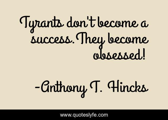 This page presents the quote "Tyrants don't become a success.They become obsessed!". Author of this quote is Anthony T. Hincks. This quote is about life, tyrants, success, obsessed, don-t-become, philosophy, dictators, greed,.