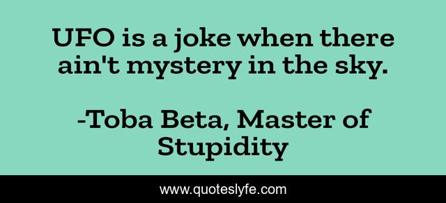 This page presents the quote "UFO is a joke when there ain't mystery in the sky.". Author of this quote is Toba Beta, Master of Stupidity. This quote is about mystery, joke, ufo,.