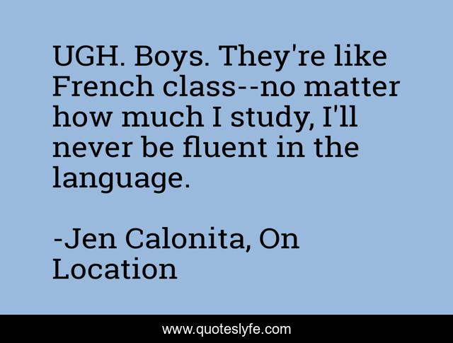 "Jen Calonita, On Location Quotes." Quoteslyfe.com, 2025. Fri. 05 Dec. 2025. <https://www.quoteslyfe.com/quote/UGH-Boys-They-re-like-French-class-257288>.
