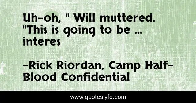 This page presents the quote "Uh-oh, " Will muttered. "This is going to be ... interes". Author of this quote is Rick Riordan, Camp Half-Blood Confidential. This quote is about humor, percy-jackson,.