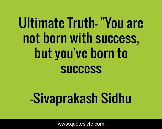 This page presents the quote "Ultimate Truth- "You are not born with success, but you've born to success". Author of this quote is Sivaprakash Sidhu. This quote is about successful-mind, success-strategies, sivaprakash-sidhu, success,.