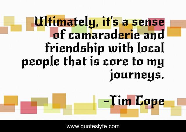 "Tim Cope Quotes." Quoteslyfe.com, 2025. Sat. 06 Dec. 2025. <https://www.quoteslyfe.com/quote/Ultimately-it-s-a-sense-of-camaraderie-318961>.