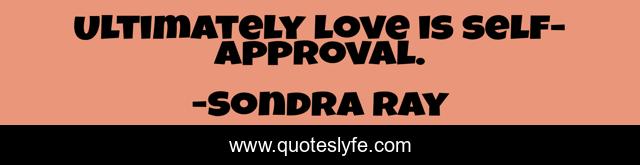 This page presents the quote "Ultimately love is self-approval.". Author of this quote is Sondra Ray. .