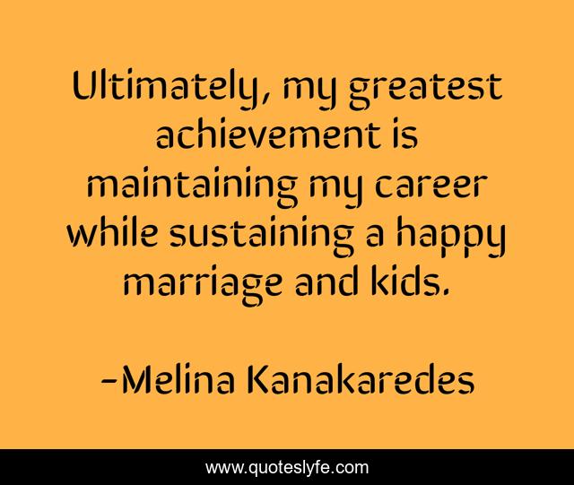 This page presents the quote "Ultimately, my greatest achievement is maintaining my career while sustaining a happy marriage and kids.". Author of this quote is Melina Kanakaredes. This quote is about greatest, achievement, happy,.