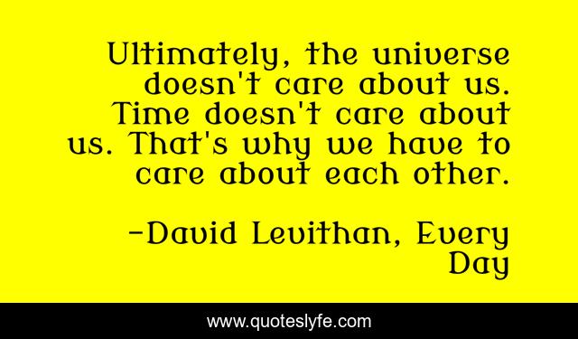 This page presents the quote "Ultimately, the universe doesn't care about us. Time doesn't care about us. That's why we have to care about each other.". Author of this quote is David Levithan, Every Day. This quote is about david-leviathan, romance, young-adult-fiction, book,.