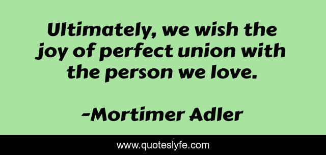 This page presents the quote "Ultimately, we wish the joy of perfect union with the person we love.". Author of this quote is Mortimer Adler. This quote is about joy, love, affection, wish,.