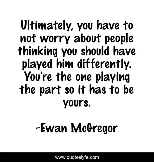 This page presents the quote "Ultimately, you have to not worry about people thinking you should have played him differently. You're the one playing the part so it has to be yours.". Author of this quote is Ewan McGregor. This quote is about movies, acting, actors,.