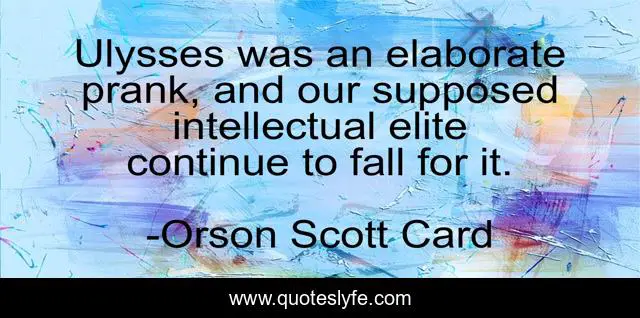 This page presents the quote "Ulysses was an elaborate prank, and our supposed intellectual elite continue to fall for it.". Author of this quote is Orson Scott Card. .