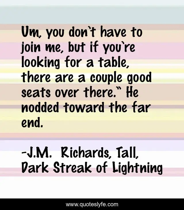 "J.M. Richards, Tall, Dark Streak of Lightning Quotes." Quoteslyfe.com, 2025. Fri. 05 Dec. 2025. <https://www.quoteslyfe.com/quote/Um-you-don-t-have-to-join-246057>.