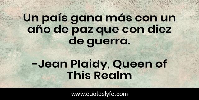 This page presents the quote "Un país gana más con un año de paz que con diez de guerra.". Author of this quote is Jean Plaidy, Queen of This Realm. This quote is about wisdom, queen, peace, war,.