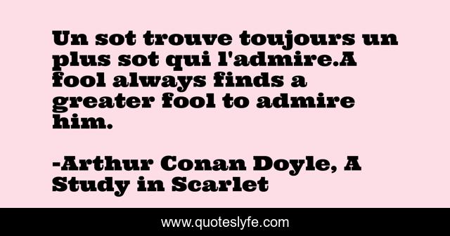 "Arthur Conan Doyle, A Study in Scarlet Quotes." Quoteslyfe.com, 2025. Sat. 06 Dec. 2025. <https://www.quoteslyfe.com/quote/Un-sot-trouve-toujours-un-plus-sot-68118>.
