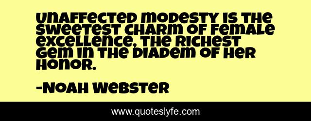 This page presents the quote "Unaffected modesty is the sweetest charm of female excellence, the richest gem in the diadem of her honor.". Author of this quote is Noah Webster. This quote is about modesty, honor, female,.