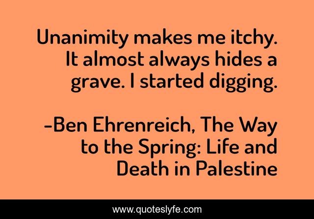 "Ben Ehrenreich, The Way to the Spring: Life and Death in Palestine Quotes." Quoteslyfe.com, 2025. Sat. 06 Dec. 2025. <https://www.quoteslyfe.com/quote/Unanimity-makes-me-itchy-It-almost-always-256659>.