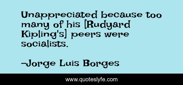 This page presents the quote "Unappreciated because too many of his [Rudyard Kipling's] peers were socialists.". Author of this quote is Jorge Luis Borges. This quote is about kipling, socialism,.