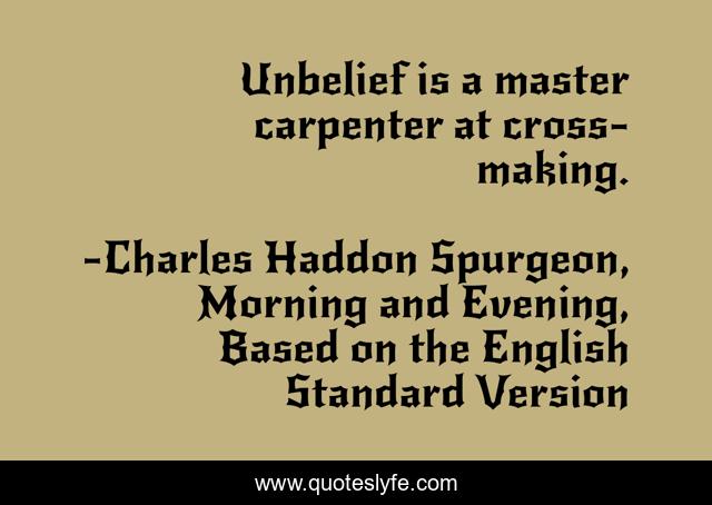 "Charles Haddon Spurgeon, Morning and Evening, Based on the English Standard Version Quotes." Quoteslyfe.com, 2025. Fri. 05 Dec. 2025. <https://www.quoteslyfe.com/quote/Unbelief-is-a-master-carpenter-at-cross-196337>.