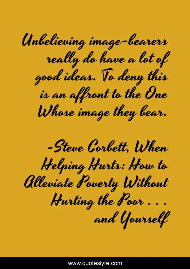 "Steve Corbett, When Helping Hurts: How to Alleviate Poverty Without Hurting the Poor . . . and Yourself Quotes." Quoteslyfe.com, 2025. Sat. 06 Dec. 2025. <https://www.quoteslyfe.com/quote/Unbelieving-image-bearers-really-do-have-a-185113>.