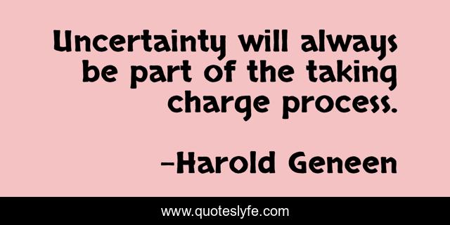 This page presents the quote "Uncertainty will always be part of the taking charge process.". Author of this quote is Harold Geneen. This quote is about positive, confidence, motivational, optimistic,.