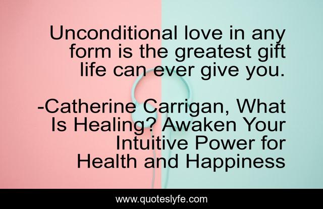 "Catherine Carrigan, What Is Healing? Awaken Your Intuitive Power for Health and Happiness Quotes." Quoteslyfe.com, 2025. Fri. 05 Dec. 2025. <https://www.quoteslyfe.com/quote/Unconditional-love-in-any-form-is-the-188016>.