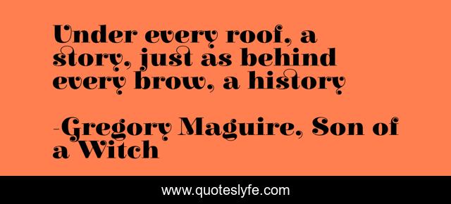 This page presents the quote "Under every roof, a story, just as behind every brow, a history". Author of this quote is Gregory Maguire, Son of a Witch. This quote is about tale, story, history,.