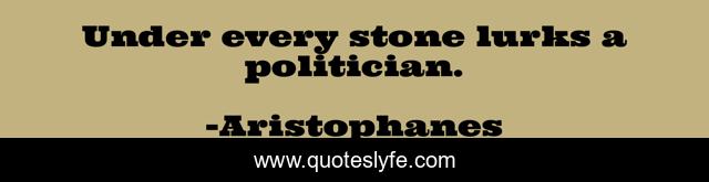 This page presents the quote "Under every stone lurks a politician.". Author of this quote is Aristophanes. This quote is about politics, politicians, humor,.